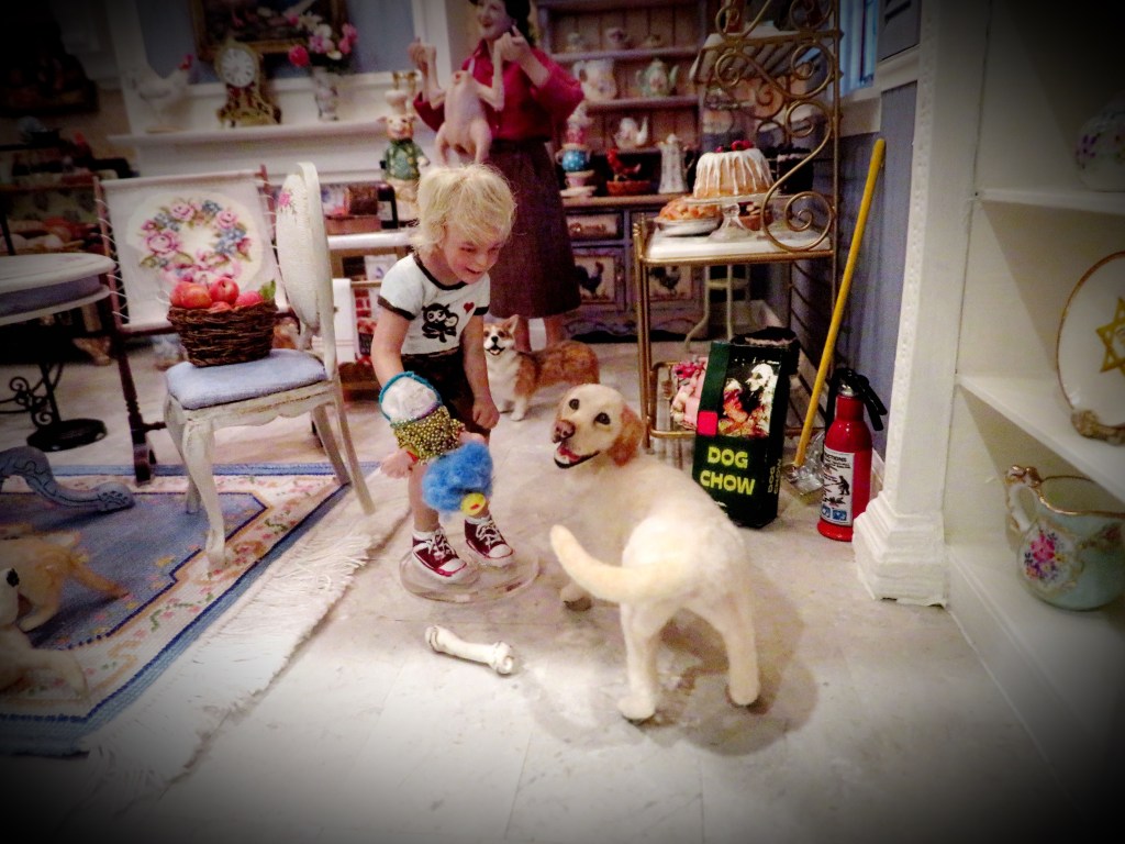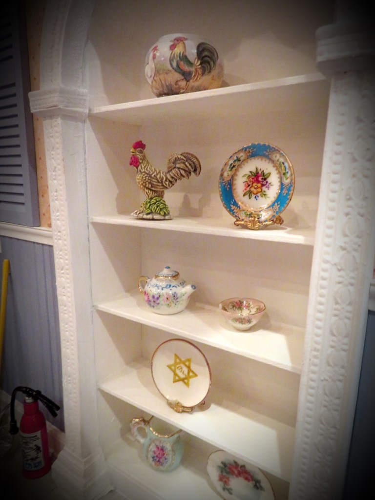 Tony Alan Jone’s made the room box and my friend Sharon Cariola created the 1:12 scale Julia Child. Dear Sylvain Forget created the children. I was inspired by the movie Julie and Julia, and my memories of Julia Child on television, so I created this room in homage to Julia Child the French Chef.