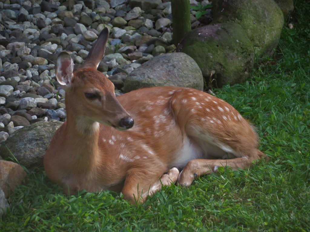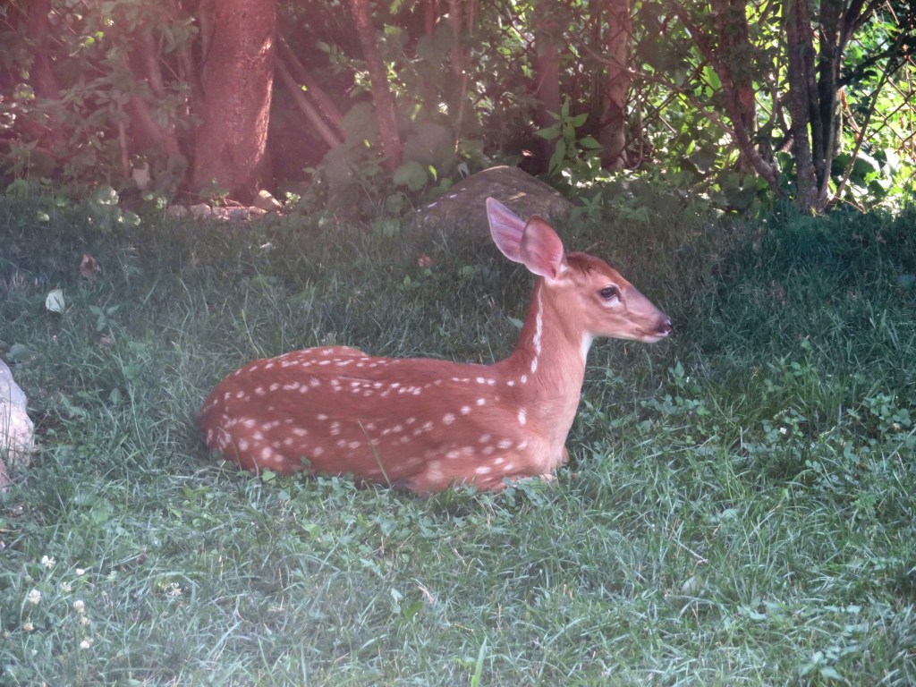 So far three doe have had given birth to fawns on our property, and we watched the spotted babies grow into doe and bucks. To view a tiny fawn nursing from the doe is an amazing sight. I highly recommend it!
