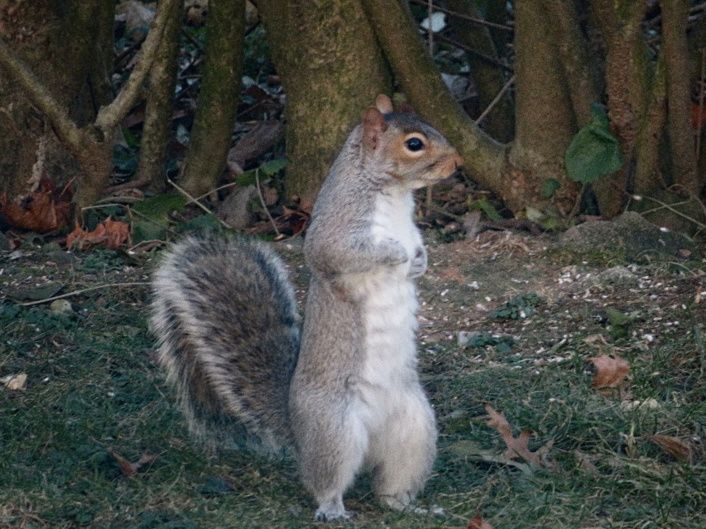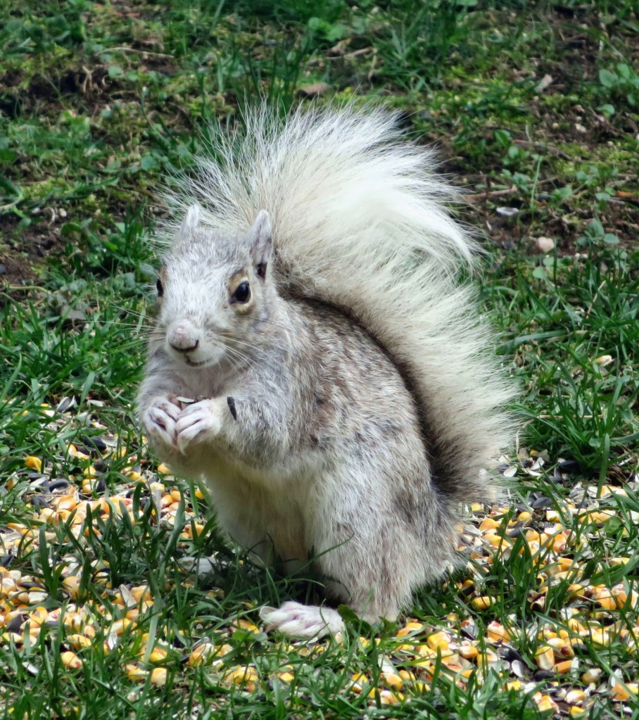 It is hard life for wildlife who come to visit. I have seen deer with bites on their sides and and broken antlers. I watched the silver squirrel pictured here show up with one ear bitten and bloody. He is a feisty little guy and completely recovered from his ordeal. Life is hard for birds and deer with hunters, coyotes, and hawks, ready to kill for sport or food. My husband and I are gratified that we can help these beautiful animals and birds to survive.