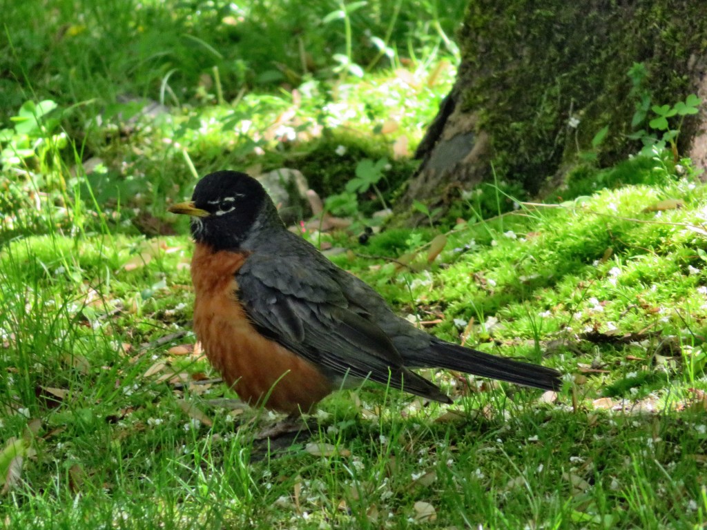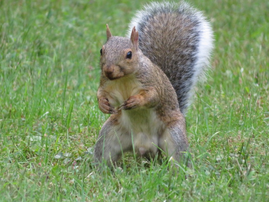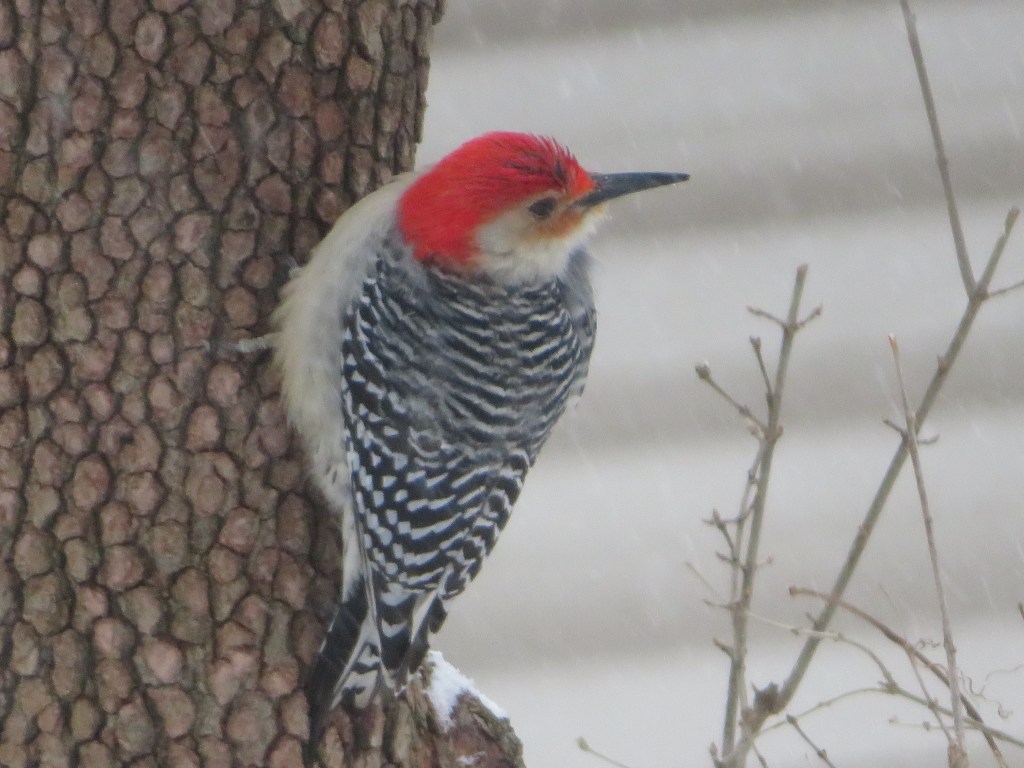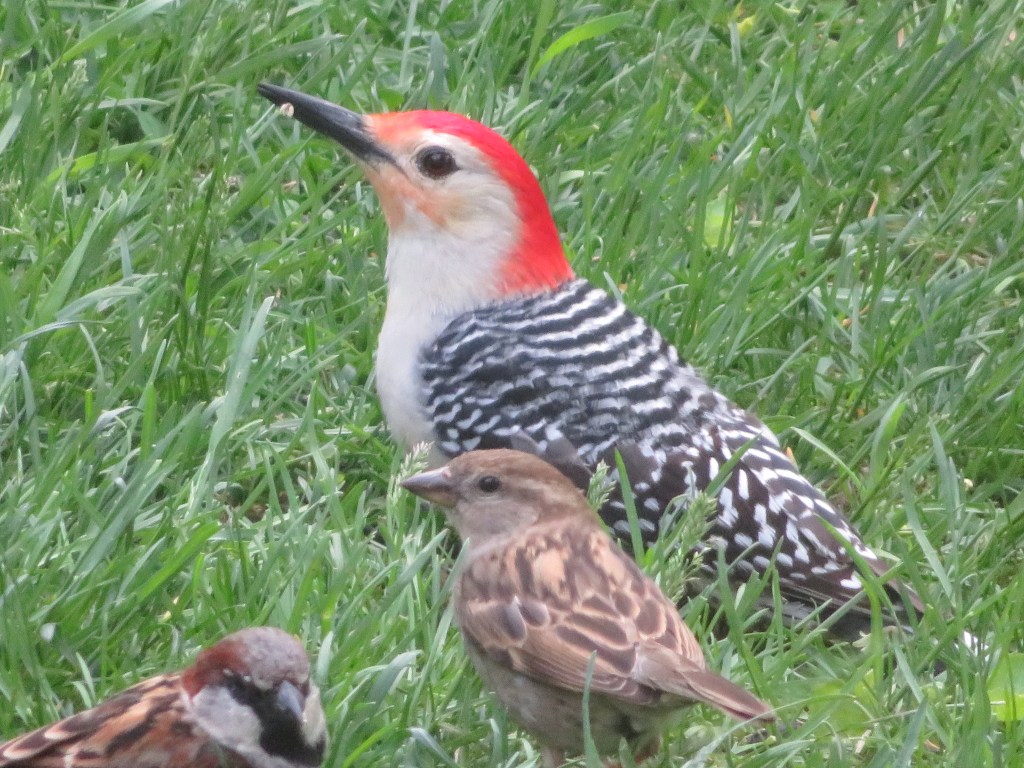 We had a red-bellied woodpecker visit us since we moved to New Jersey. He used to make a drilling noise above our heads on the roof in the wee hours of the morning. Needing sleep and not knowing what to do, I contacted a naturalist. It seems that Woody (my name for the red-bellied male woodpecker) was looking for a mate. That was why he drilled each morning. It took two years, but Woody found a beautiful female red-bellied woodpecker, and they had a family. Woody and his mate eat food in the grass and Woody flies up to his favorite tree to search for insects and other tasty morsels. Life is never dull with Woody around.